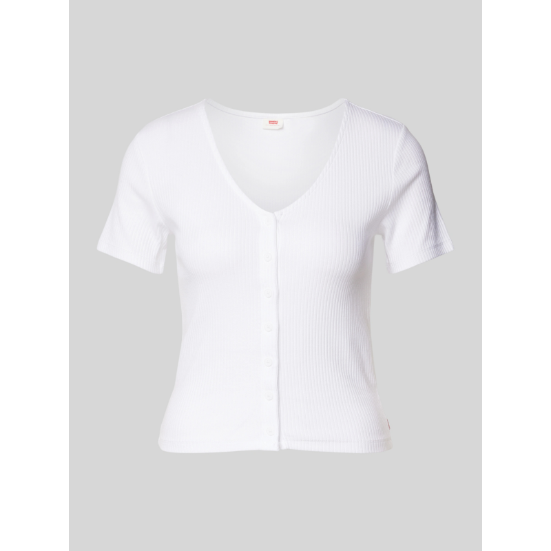 Wij houden van een top die alles kan. Deze Levi's Muse Short-Sleeve Tee is deels vest, deels gebreid en is geschikt om elke dag te dragen. Het heeft een flatterende V-halslijn, een knoopsluiting aan de voorkant en een flatterende slim pasvorm.