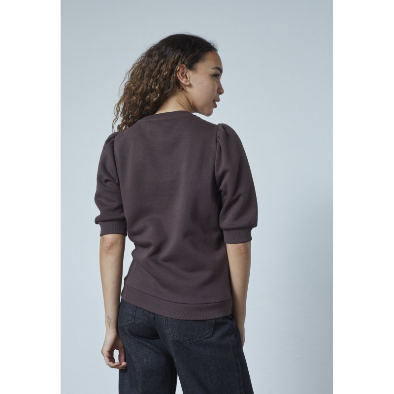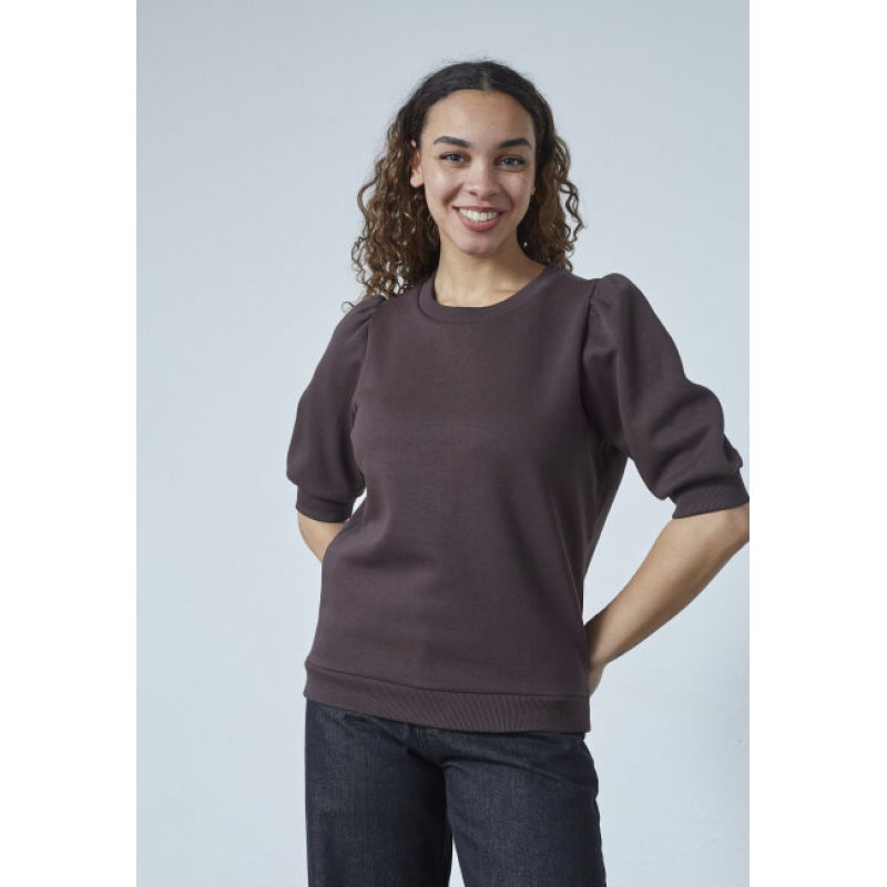 Super leuke bruine sweater van Sisters Point. De sweater heeft een ronde hals en driekwart mouwen met een pof. Verder is de sweater heerlijk zacht. Gemaakt van 80% katoen en 20% polyester.