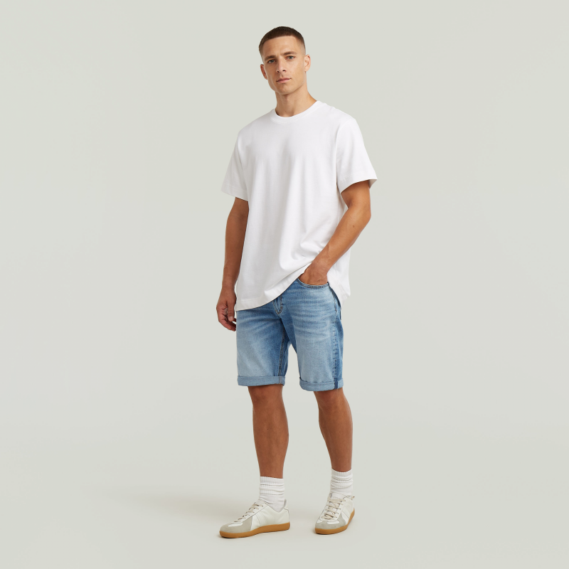 Deze G-star Mosa Stretch denim short heeft een knielengte en is uitgevoerd in een straight fit.