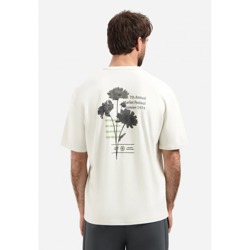 Dit stevige T-shirt van interlockstof heeft een effen voorkant en een opvallende botanische print op de achterkant voor een moderne, grafische look. De zware kwaliteit en comfortabele pasvorm maken het ideaal voor alledaagse outfits.