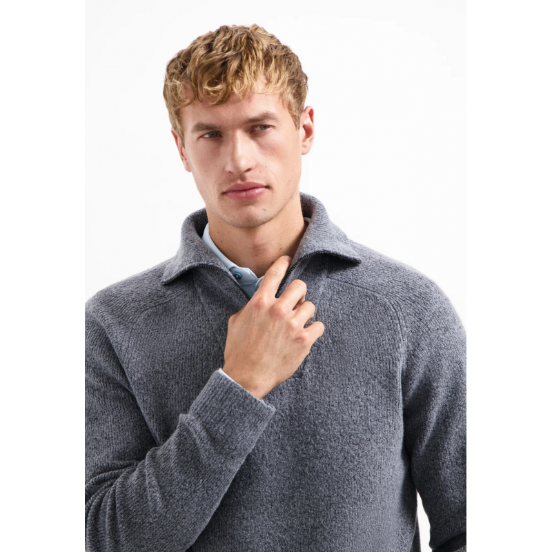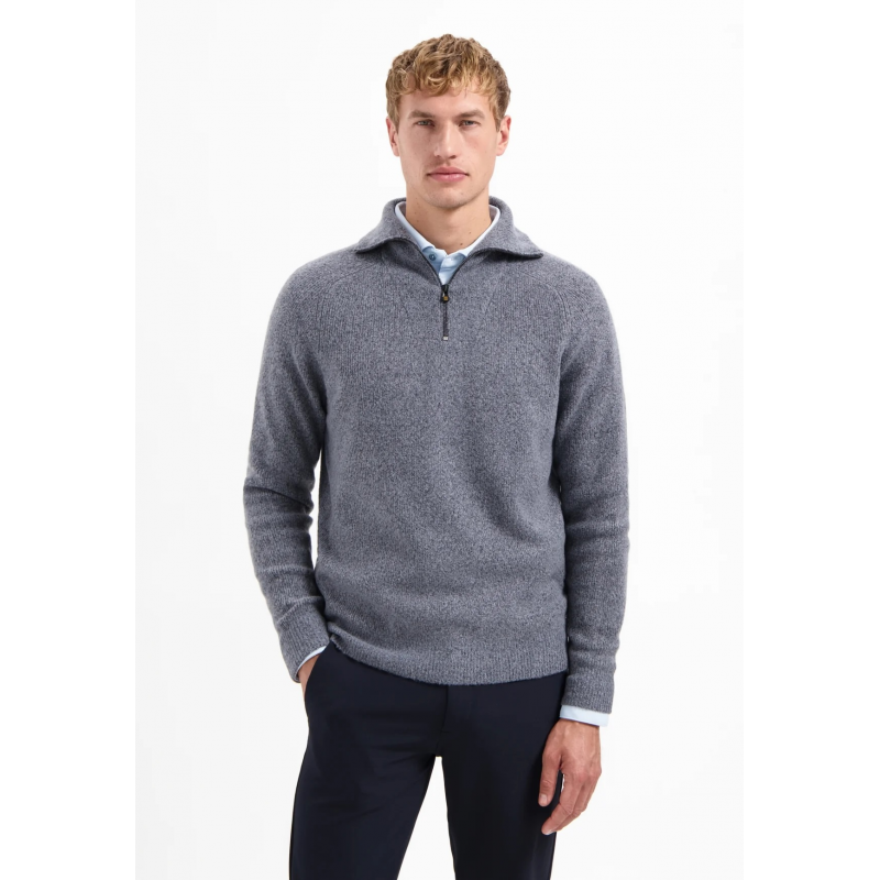 Deze grof gebreide trui van een warme wolmix heeft een hoge kraag met rits voor extra comfort en stijl. Perfect voor koude dagen. Combineer het met jeans en laarzen voor een ruige buitensfeer.