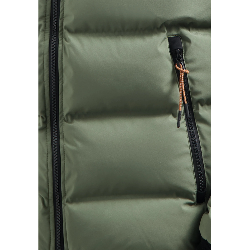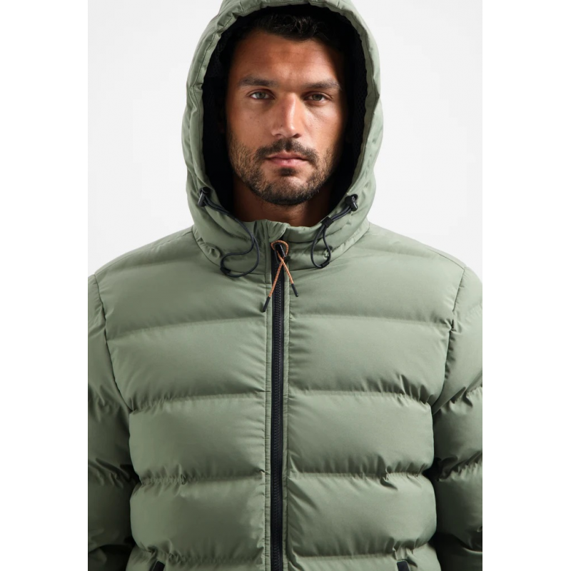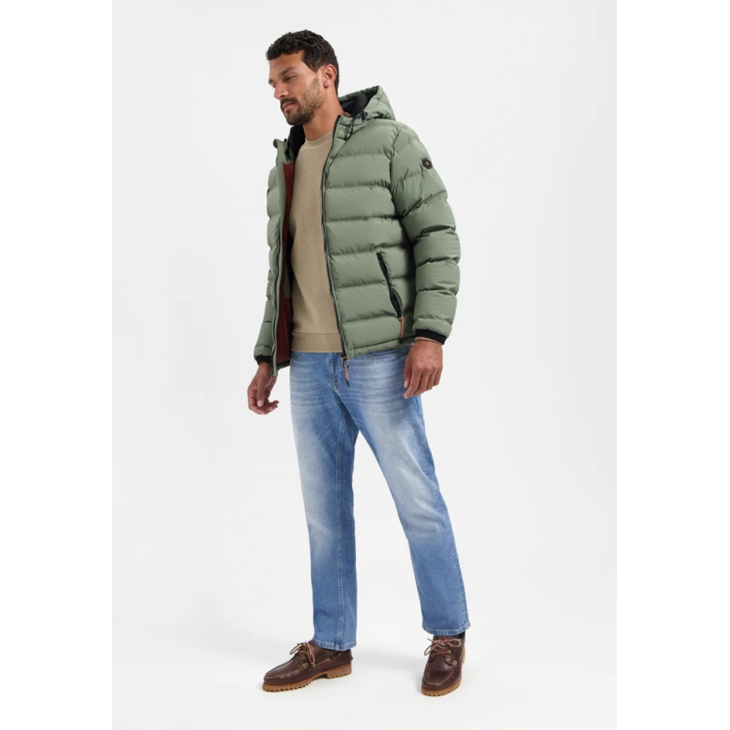 Dit gewatteerde jas met kap is je go-to voor koude dagen. Zwarte ritsen en gewaagde accenten voegen een moderne rand toe. Combineer het met een sweater en jeans voor een robuuste, informele winterlook.