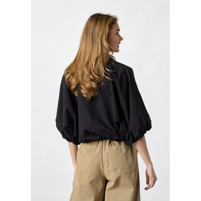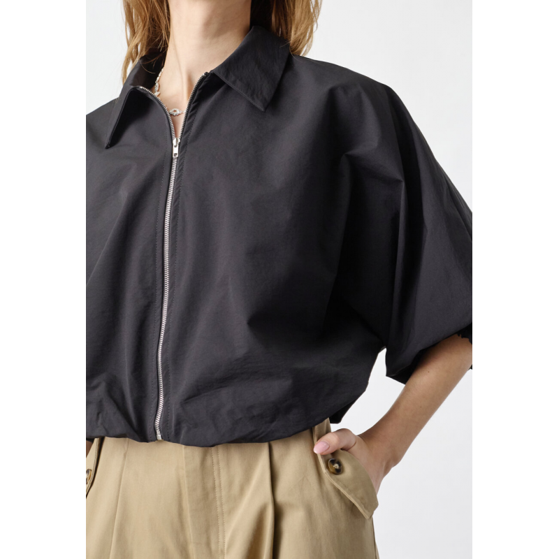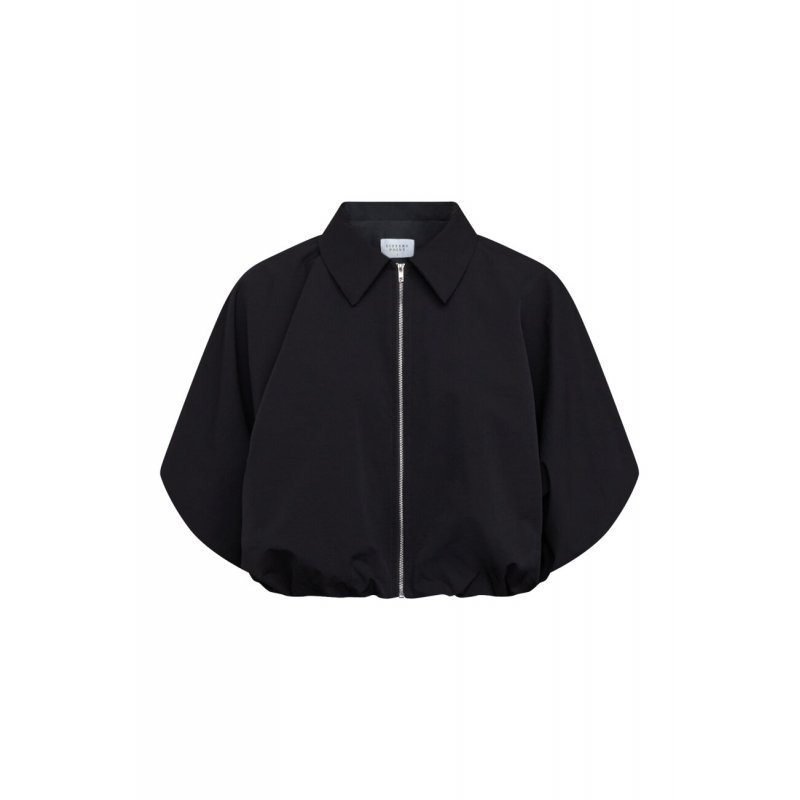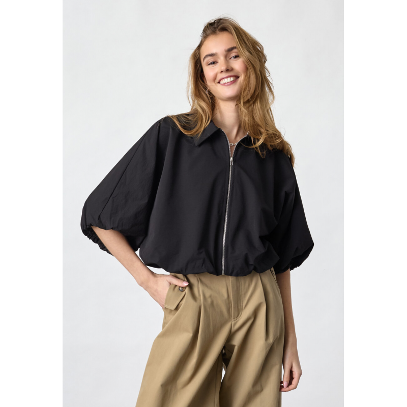 Het Sisters Point Nelly-ja is een bomberjack/blouse met volumineuze korte mouwen en een moderne, cropped pasvorm. Het jack heeft een klassieke kraag, een ritssluiting over de hele lengte en elastische boorden.