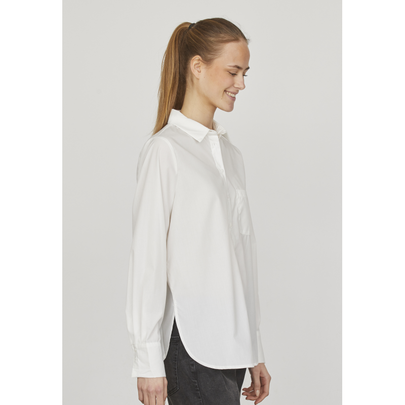 Het Sisters Point VIRRA-SH is een kort, effen shirt met split en een normale pasvorm. Het shirt heeft een knoopsluiting met bijpassende knopen voor een minimalistische uitstraling.