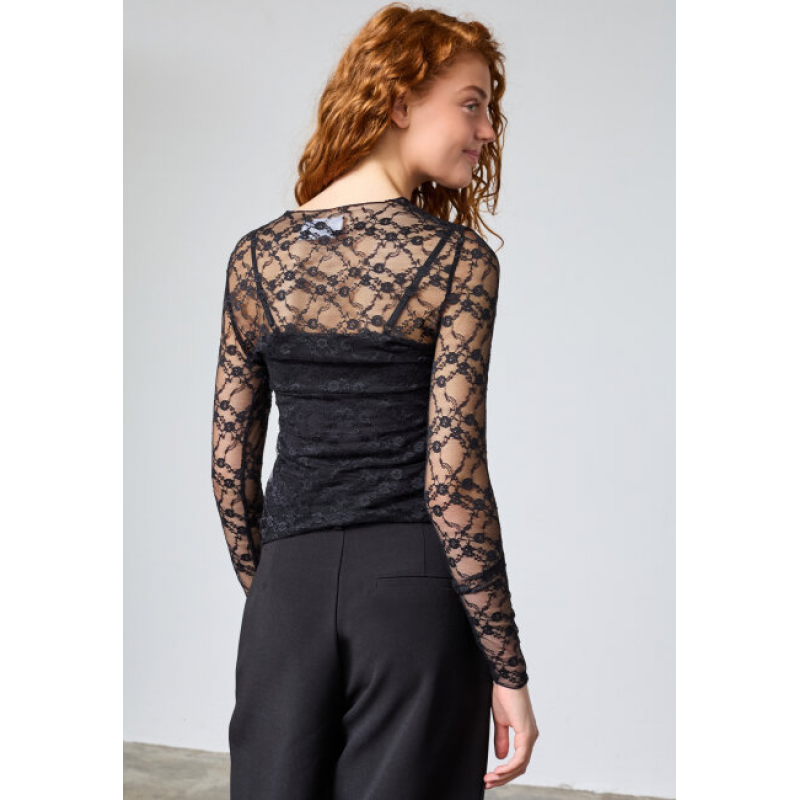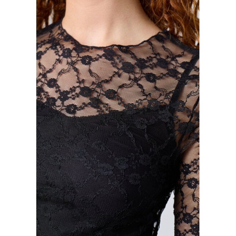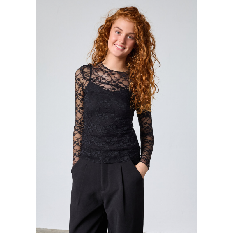 Deze Sisters Point venga-ls top is een kanten top met ronde hals en lange mouwen. Het is een nauwsluitende top gemaakt van 90% polyamide en 10% elastaan.