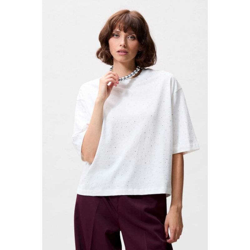 Offwhite loose fit t-shirt met strass.