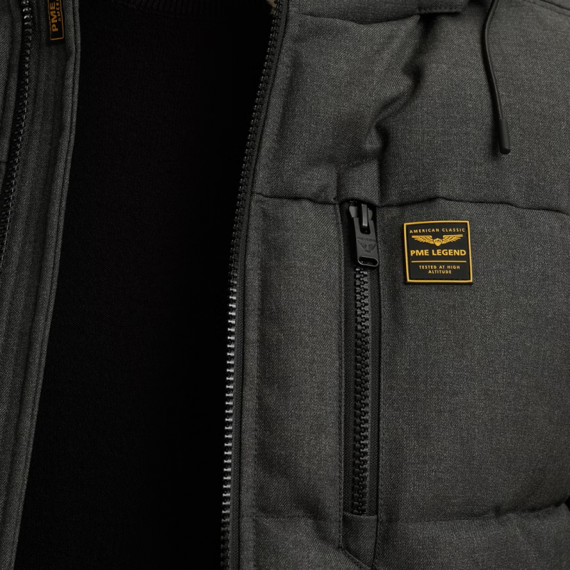 De PME Legend Yetcraft pufferjas is uitgevoerd in een melange twill met een wollen look. De quilting zorgt voor een stoere uitstraling. De gecoate achterzijde van de stof maakt dit model tot een perfecte all-weather jas. De capuchon is afneembaar en verstelbaar, en de afneembare kraag is gevoerd met imitatiebont voor extra warmte en comfort. Deze waterafstotende jas is voorzien van twee zijzakken met fleece voering, een borstzak en een binnenzak met ritssluiting.