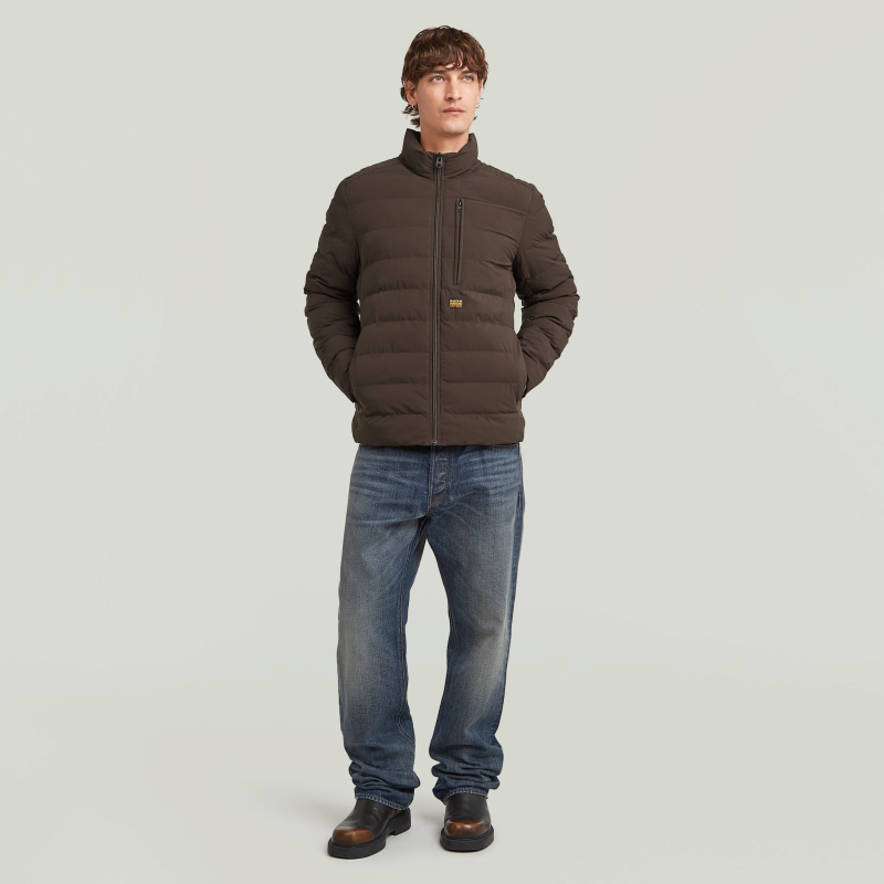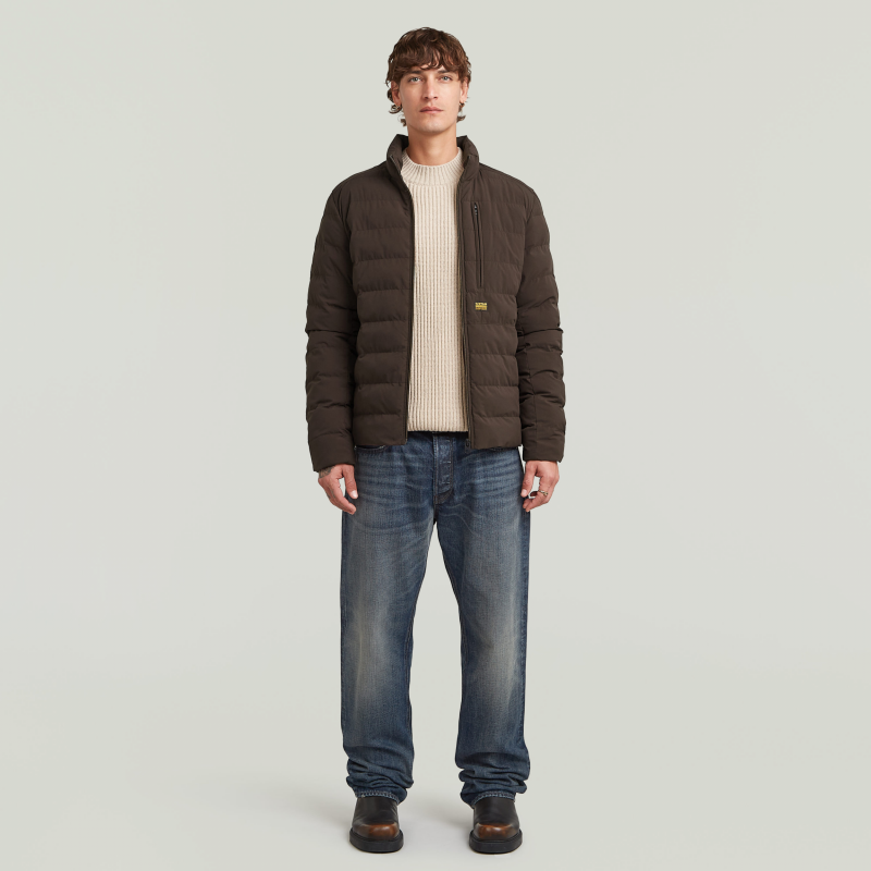 Het G-star foundation liner jack is gewatteerd en doorgestikt en heeft een opstaande kraag.Het heeft een regular fit.