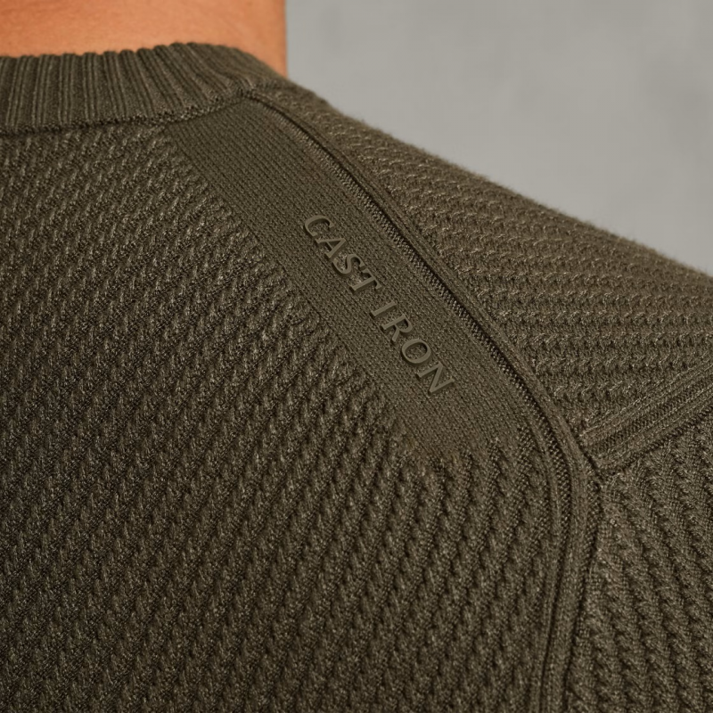 Deze Cast Iron trui is vervaardigd uit een hele zachte, comfortabele Ecovero-viscoseblend, die een subtiel harige, wollen uitstraling heeft. De allover structuur geeft het item een moderne look, terwijl de kenmerkende Cast Iron details het ontwerp compleet maken.