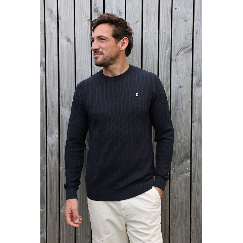 Deze Kultivate vertical trui is gemaakt van 100% biologisch katoen met een geribbelde afwerking. Het heeft een regular fit met lange mouwen en een slanke pasvorm.