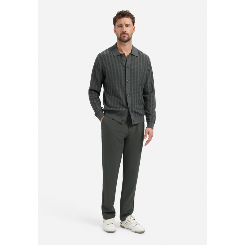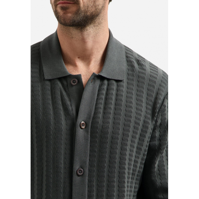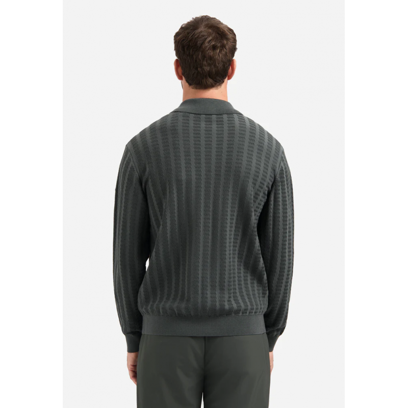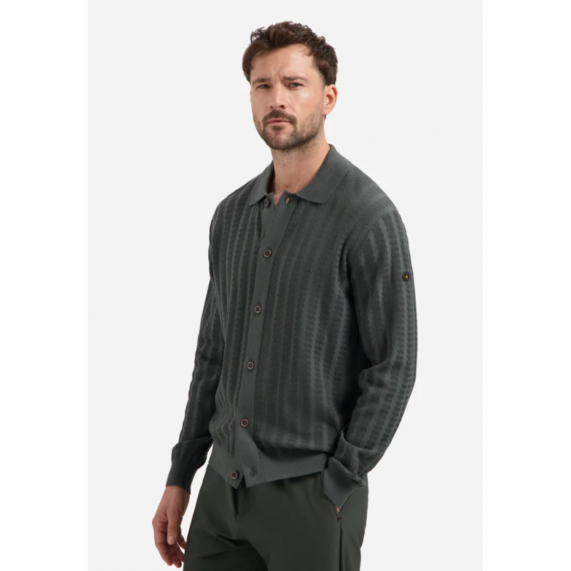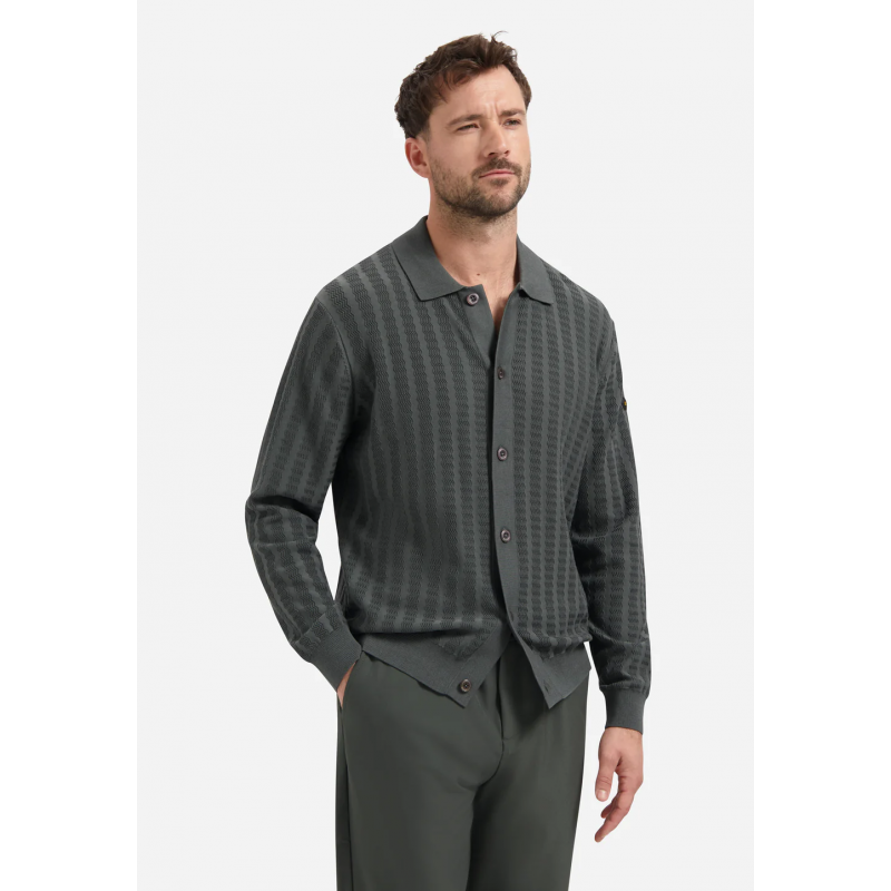 Dit fijngebreide vest heeft een klassieke polokraag en een volledige knoopsluiting. De subtiele jacquardtextuur zorgt voor een verfijnde, retro-geïnspireerde touch. Draag het open of dicht over een T-shirt of overhemd voor een stijlvolle extra laag.