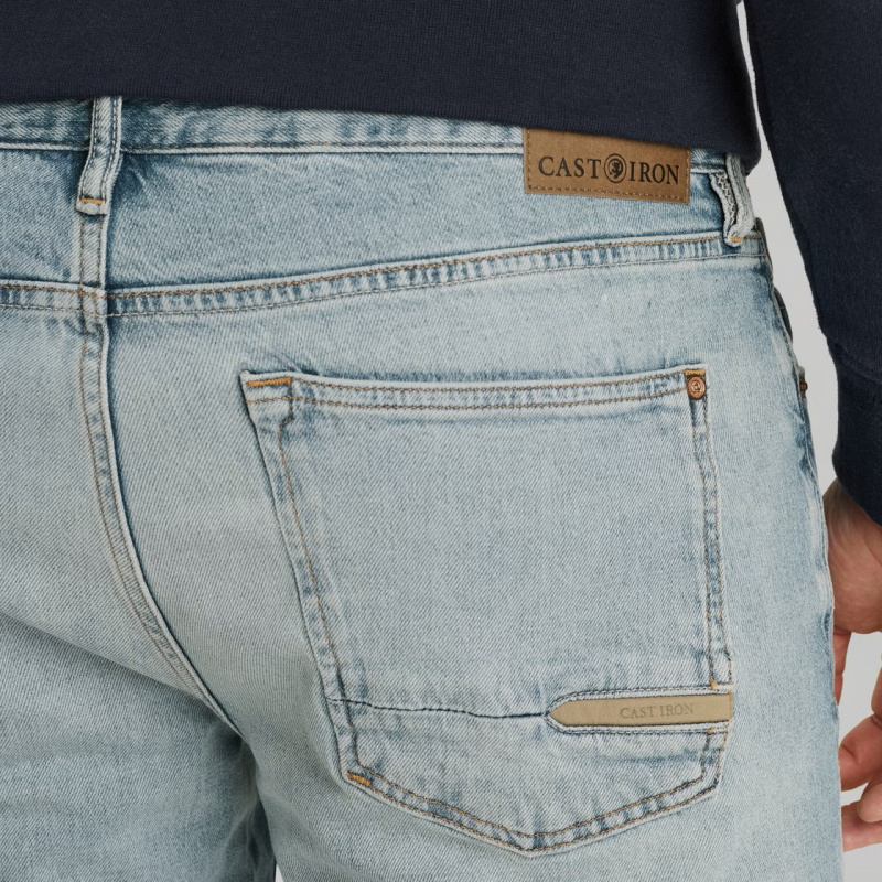 Deze Cast Iron VALVER jeans heeft een regular fit en is gemaakt van denim. De jeans heeft een rits- en knoopsluiting en vijf zakken, ideaal voor dagelijks gebruik. Je draagt hem makkelijk bij verschillende outfits.