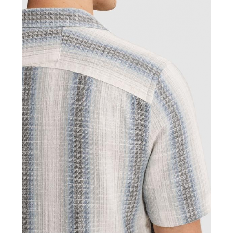 Cast Iron short sleeve yam dyed stripe structure shirt.