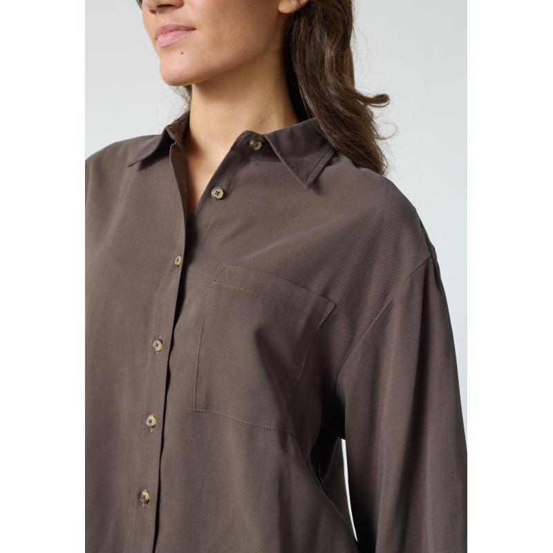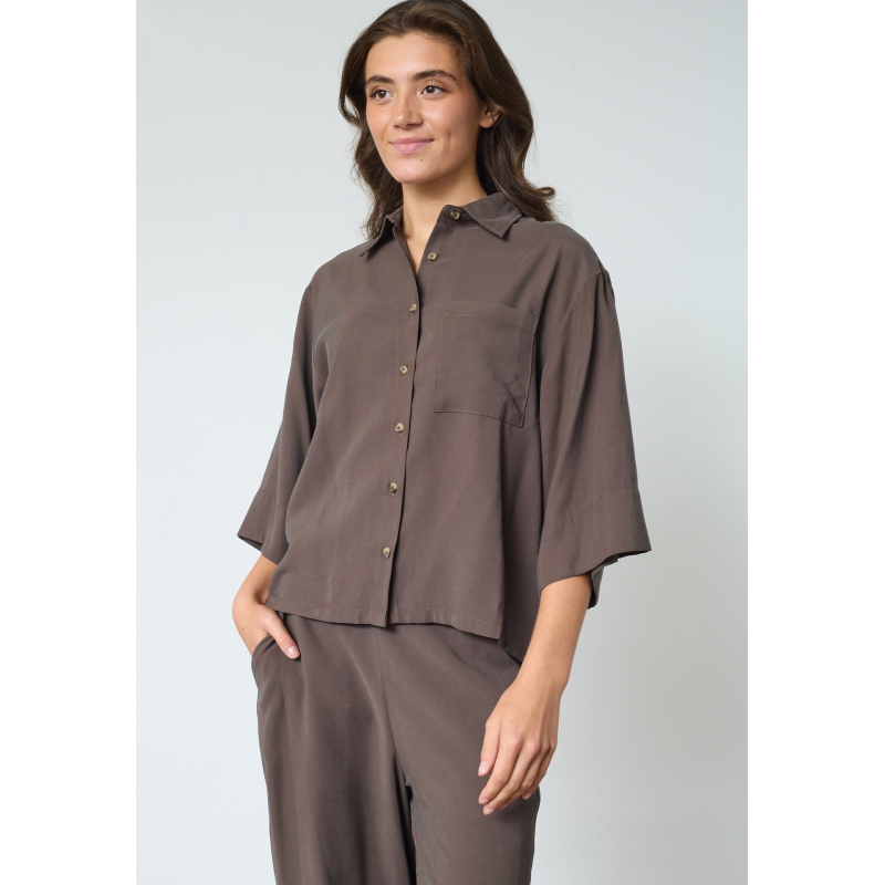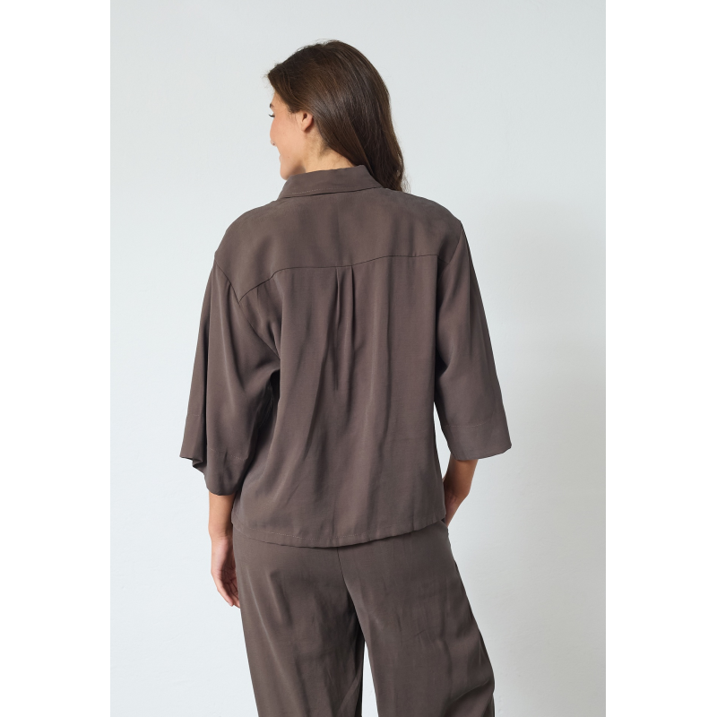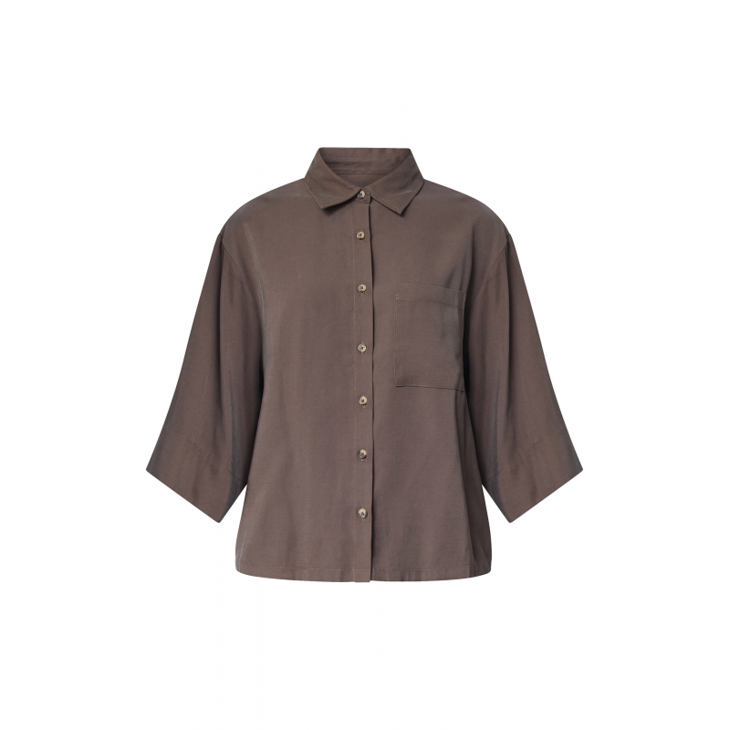 Dit Sisters Point VERINA-SH.SS2 is een kort, effen shirt. Het shirt heeft losse, luchtige driekwartmouwen en een borstzakje. Het shirt heeft een knoopsluiting en een klassieke kraag.